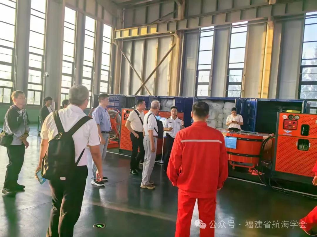 10月17日下午,研讨会按既定议程组织台湾地区代表赴福清开展实地考察。在江阴港区的万华化学福建码头有限公司,代表们详细观摩了化学品码头的现代化管理系统,深入了解智能化技术在危化品存储、运输全流程监管中的应用;在福州船舶溢油应急设备库,大家近距离接触各类海洋溢油应急处置科技产品,直观感受大陆在船舶污染应急保障领域的技术实力与储备水平。实地考察让两岸代表的交流从“理论”走向“实践”,进一步加深了对彼此技术应用场景的认知。