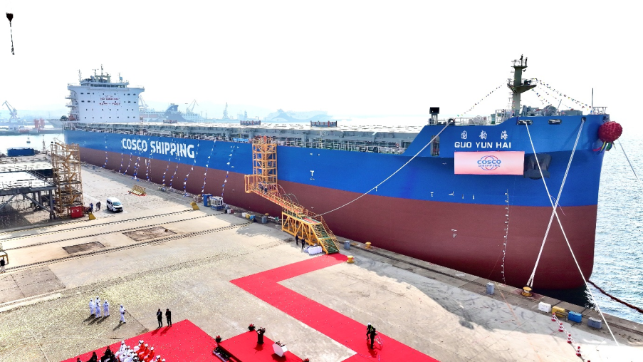 3月26日,国内首艘80000吨多用途粮食运输船“国韵海”轮交付命名仪式在大连中远海运重工码头隆重举行。该船由中远海运发展投资、中远海运重工建造、中远海运散运长期租入运营。陈韵女士受邀为该船命名,寓意“‘国韵海’轮承载家国情怀,劈波斩浪、逐梦远航”。